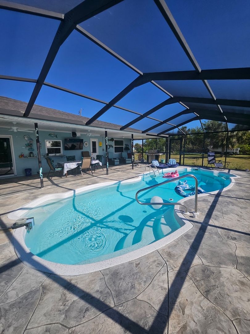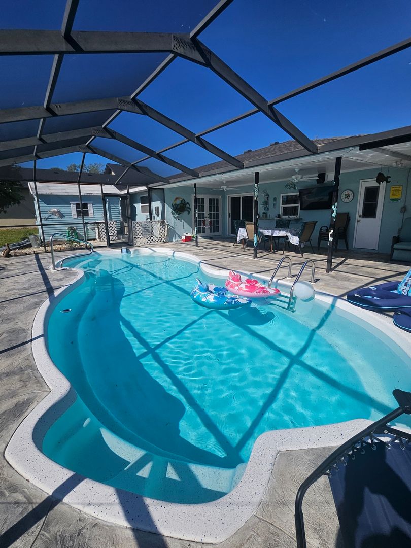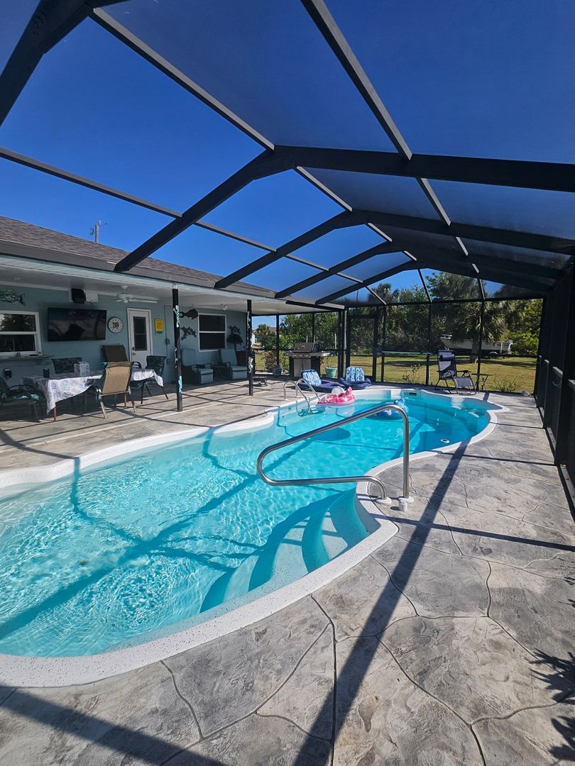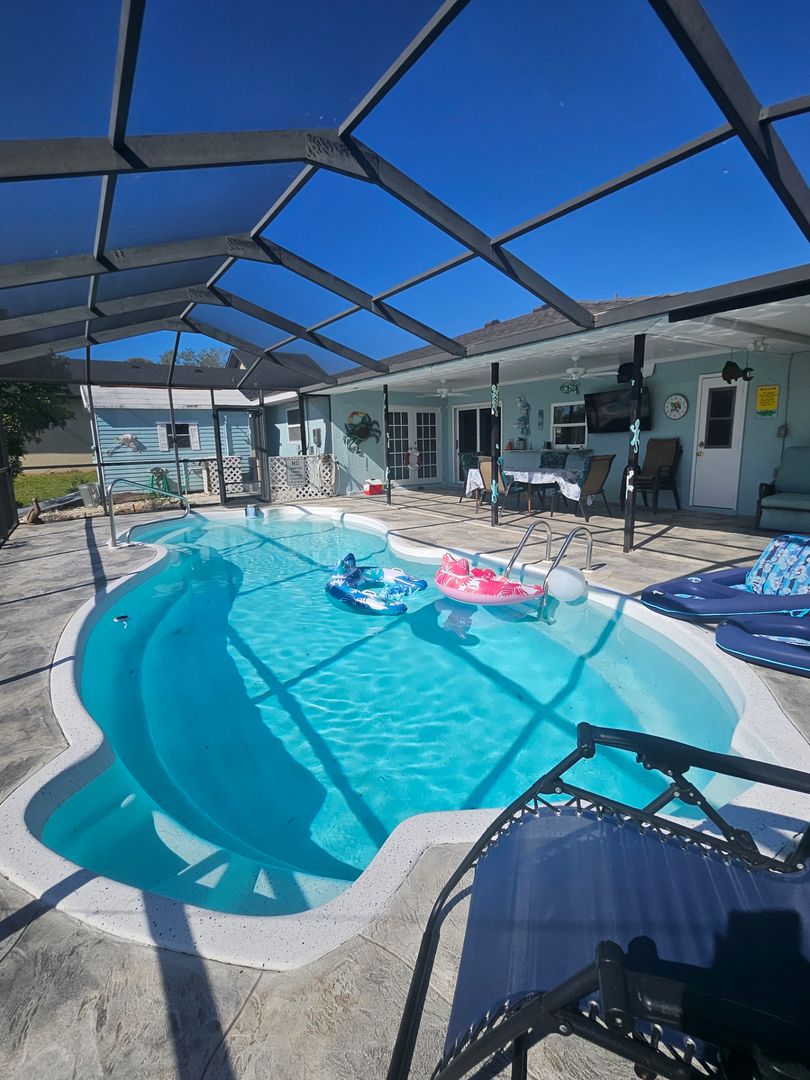 Summer in winter here in Port Charlotte FL. Located off O'Hara Drive on a saltwater canal with a dock for fishing or just relaxing. Your private pool is heated, with an outdoor TV on the screened lanai. This well-done seasonal 3 bedroom 2 bath home is now available waiting for your arrival. 3 bedrooms, 2 bathrooms living room dining room combo, well-appointed kitchen, Wi-Fi included, extra fishing poles, games, books, beach chairs, 1 bike, and sleep machines for the ultimate sleeping experience. Several locked owner closets, the shed is locked for the owner only. Sorry NO pets, boat lift not available High season Dec - April $3800 low Season May- November $2800 with a 1 month minimum. Owner car will be in the garage. Call me it's new to the market. $200 Electric cap, $1200 Security Deposit. Call Liesa for more information 941-255-7220.