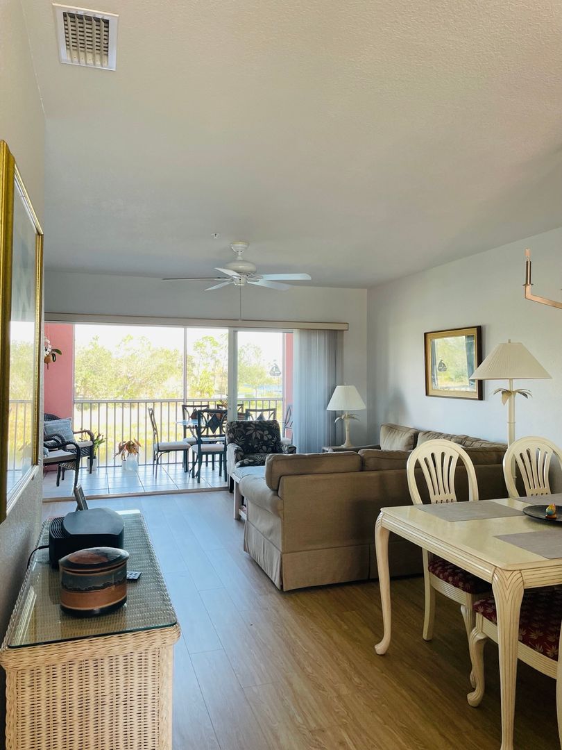 **OFF-SEASON (ONLY)** AVAILABLE FROM MAY TO DEC, 2025** *BOOK 6MOS AND ALLEVIATE TOURIST TAX! Short Term rental, in sought after Heritage Lake Park. Nicely furnished, 1 Bedroom, 1 Bath, second floor condo with an elevator. Features include open floor plan with Living Room/Dining Area combo, and tiled screened balcony overlooking the lake view. Bedroom is accomodated by a Queen bed. Recent updates include new interior paint, new Luxury Vinyl flooring in the Living Area, and new lighting fixtures. Bedroom is carpeted, and there is tile in the kitchen, bath, and balcony. Community amenities include Gated entry, Clubhouse, Heated Pool, Tennis Courts, Pickle Ball Court, Fitness Center, scenic areas to walk, run, or bike. Utiities included are Electrlcity up to $150/mo, Water/Sewer, Amazon Fire Stick TV and Streaming, and High Speed Internet. **All based on a 3mos minimum (per Association rules). Tourist Tax of 12% and Departure Clean of $165 additional. Additional Association Application Fee of $50pp. *NO Pets, NO Execeptions, per HOA Association Rules. (PRIMARY BEDROOM AND BATH ARE OWNER LOCKED AND NOT ACCESSIBLE) Contact Diana Legg, Realtor/Property Manager, 941-475-4362