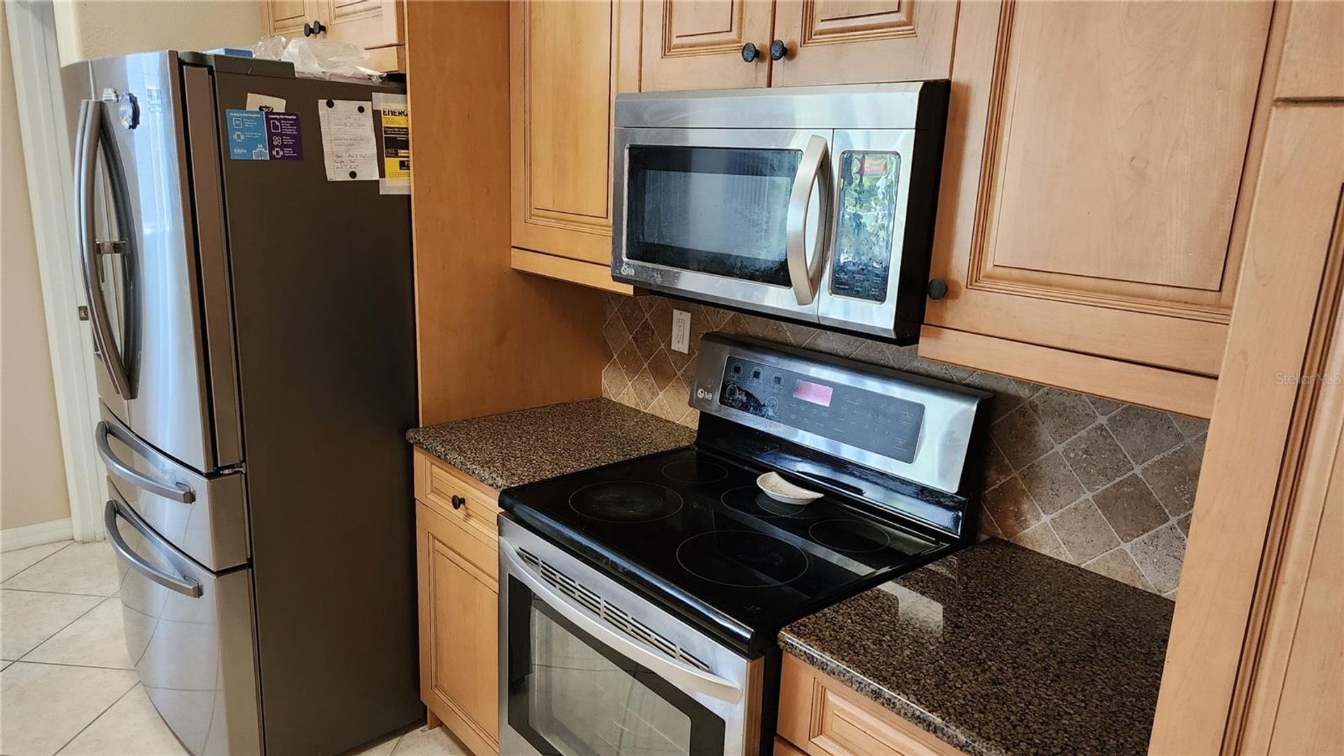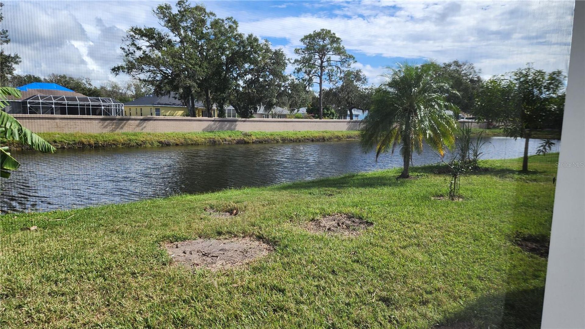 The updated eat-in kitchen overlooks the lanai and tranquil lake beyond, making everyday meals feel special.