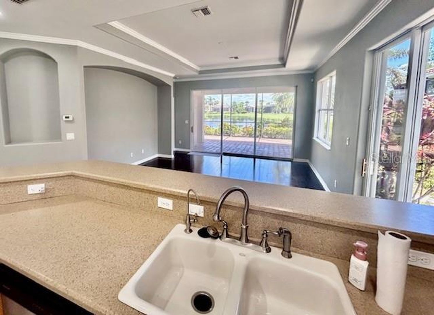 Annual, unfurnished single family home in the renowned Venetian Golf and River Club. Lushly landscaped single family home with gorgeous lake views from huge caged paver lanai. This 2 bedroom, 2 bath home is freshly painted and has all new window blinds (not shown in photos). Expansive open living, dining, kitchen with a coveted GAS stove! Beautiful hardwood flooring and new carpet in the bedrooms. Membership is offered for the 18 hole Golf Club and ALL residents have access to the River Club and its world class amenities including an onsite restaurant, six tennis courts, pickleball, a fitness center with classes, two community pools and spa with a Tiki Bar! There is also a 74 acre nature preserve with boardwalk for wildlife and bird watching. Rent also includes internet and cable. Conveniently located with easy access to I-75, SMH Venice Campus, and a multitude of restaurants and beaches in Nokomis and Venice. Come see why this is such a sought after community! Easy living!! Call Brooks for more information 302-650-6349.